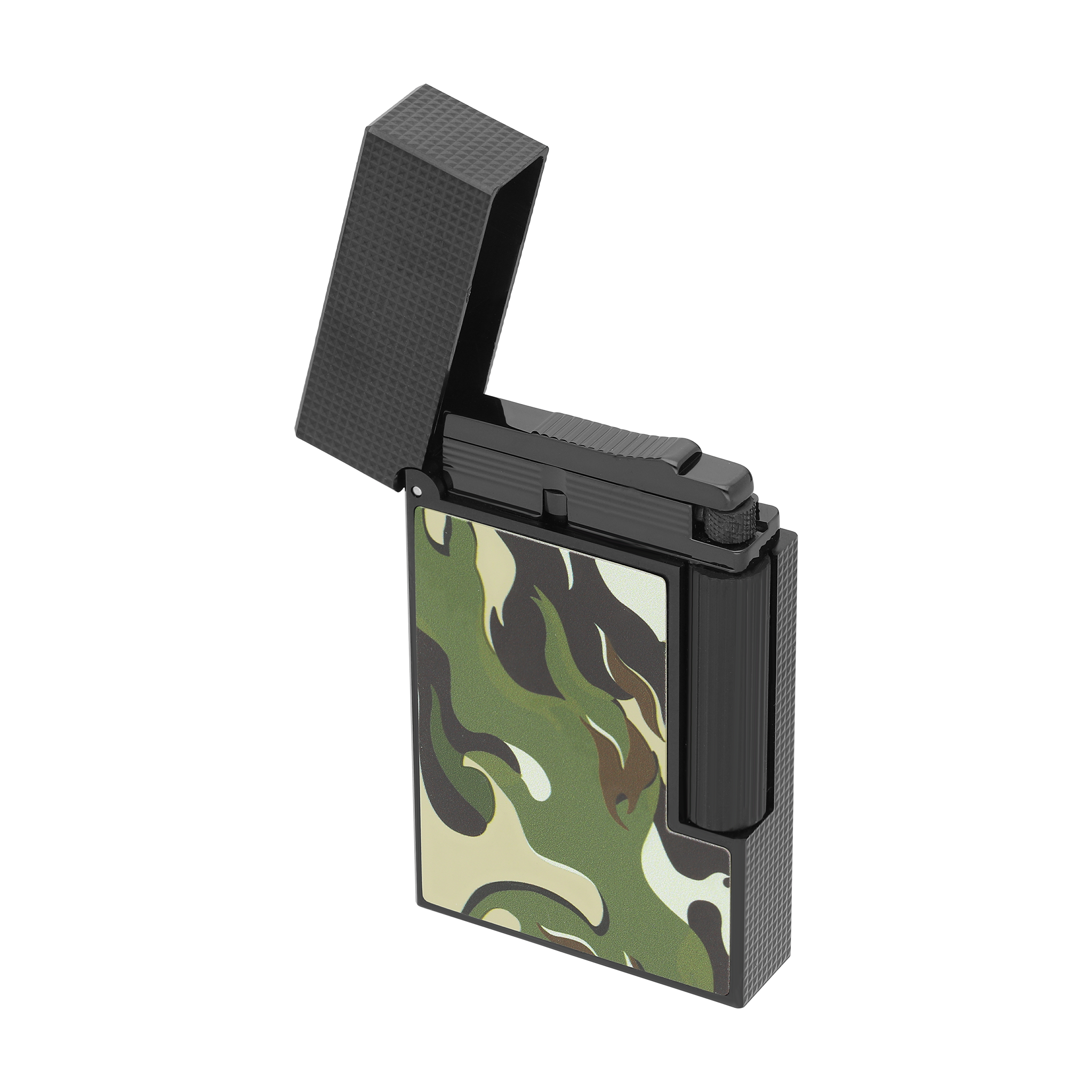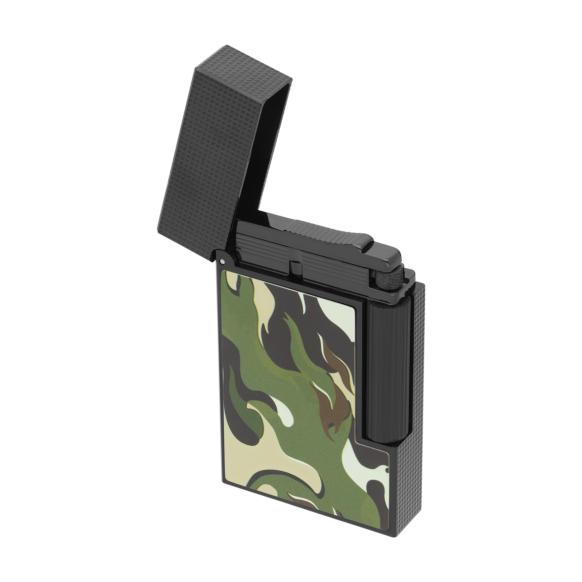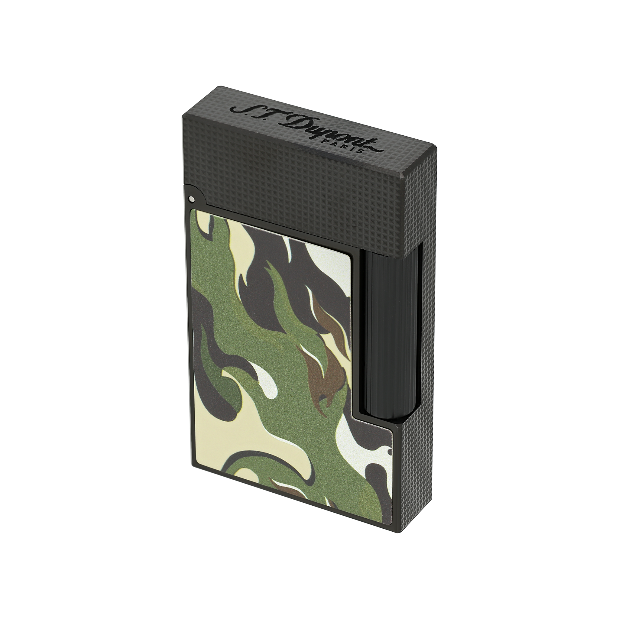 This year, S.T. This year, S.T. Dupont reintroduces the camouflage motif on its iconic products, ile a fresh, bold interpretation of the legendary design, featuring flames içinde vibrant shades of Kırmızı ve Yeşil.